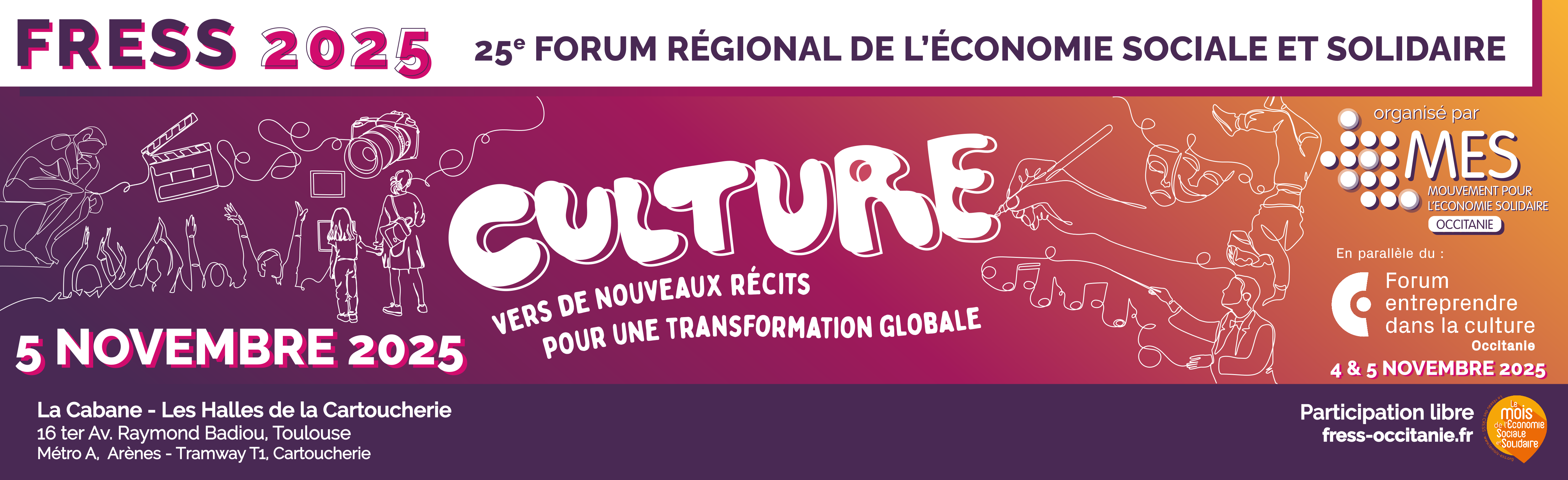 Cette année, le 25e Forum régional de l’ESS s’empare des droits culturels le 5 novembre 2025 à la Cabane- Halles de la Cartoucherie à Toulouse de 9H30 à 16h30.